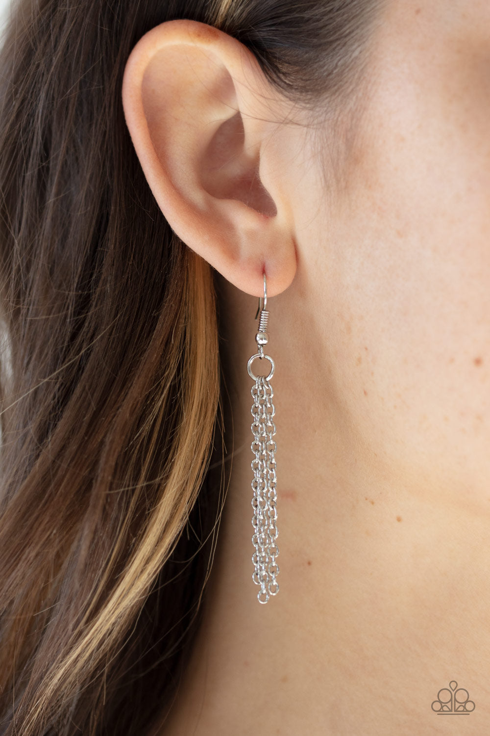 Painted in black and white stripes, an earthy brown wooden hoop swings from the bottom of a lengthened silver chain for a seasonal flair. Features an adjustable clasp closure.